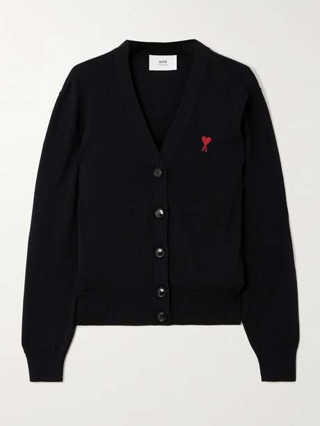 AMI PARIS' cozy cardigan is perfect for fall. Made from wool, it's embroidered with the label's 'Ami de Cœur' logo at the chest and fastens with horn buttons. Wear yours solo as a top.