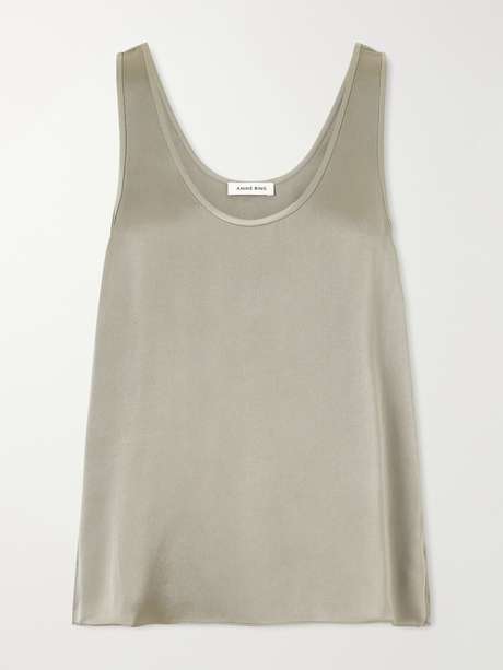 Anine Bing’s 'Lea' top is cut from lustrous silk-charmeuse in a loose silhouette. Rendered in a sage-green hue, it has a clean scoop neckline. Style it with denim or tailoring, or layer under blazers and cardigans.