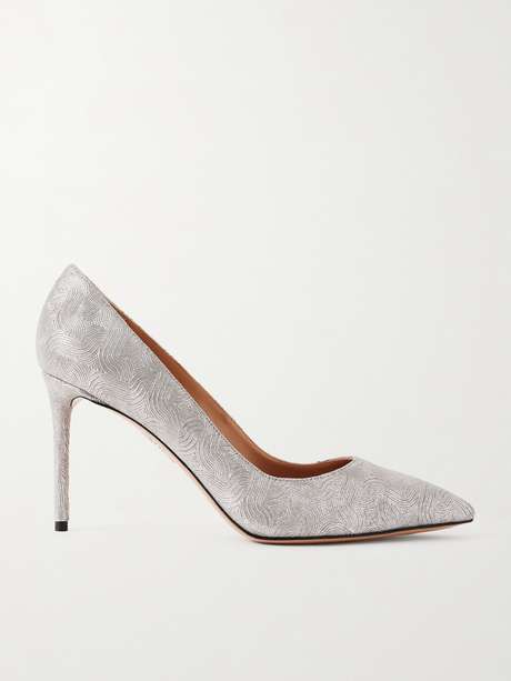Aquazzura’s ‘Purist’ pumps are timelessly elegant. Made in Italy from supple metallic leather, they have classic pointed toes and 85mm stiletto heels. Don't miss the signature pineapple motif on the outsoles and wear yours with everything from tailoring to cocktail dresses.
