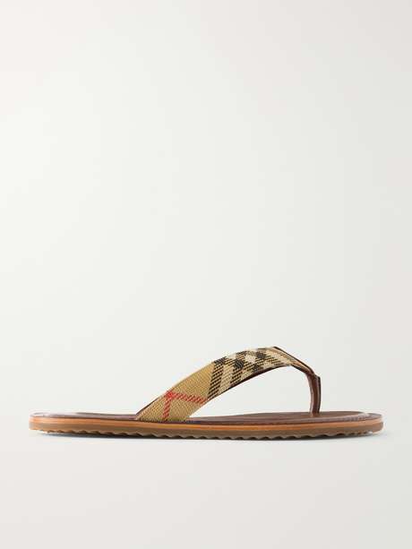 The 'Pavilion K' flip flop sandals by Burberry are patterned with the house’s iconic Burberry Check across the wide strap. Designed in a classic thong style, they rest on a smooth leather footbed and flat sole with a streamlined slip-on profile suited to warm-weather dressing.