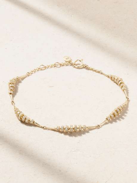 By Pariah's 'Helix' bracelet is a fresh take on classic organic styles. Cast from gold-plated metal, it has clusters of graduating rings dusted with sparkling diamonds. Wear yours solo or stacked with similar dainty styles.