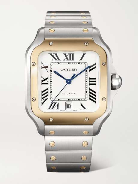 Cartier’s 'Santos de Cartier' watch reimagines the pioneering design first introduced in 1904. This contemporary iteration combines stainless steel with 18-karat gold accents on the square case and exposed screws – enduring hallmarks of the original. It features a date window, signature blued-steel hands and a faceted blue gemstone set into the crown. Both the metal bracelet and leather strap are equipped with the brand’s patented ‘QuickSwitch’ system, allowing you to swap effortlessly between styles.