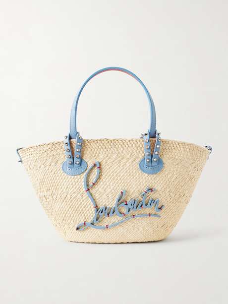 CHRISTIAN LOUBOUTIN Cabata appliquéd studded leather-trimmed raffia tote