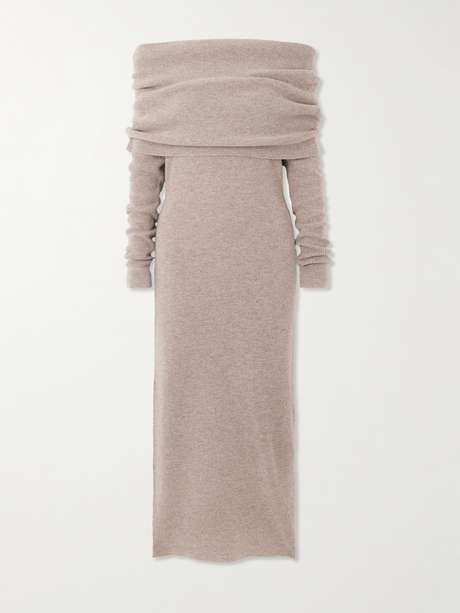 Cult Gaia's 'Carline' dress balances sensuality and comfort. Knitted from soft wool and cashmere-blend, it has an off-the-shoulder neckline that's layered like a cape. Style yours with sculptural earrings and strappy sandals.