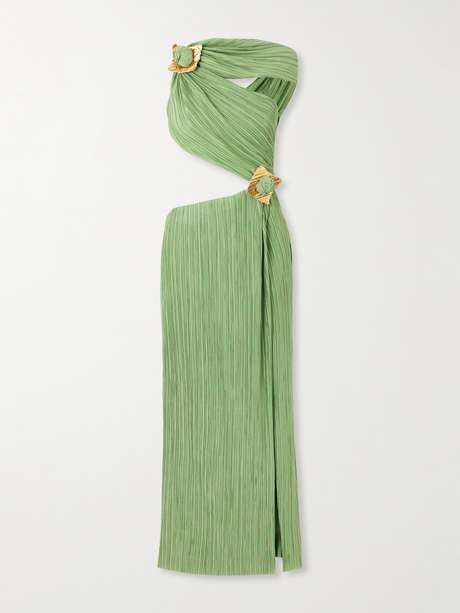 Echoing traditional Grecian gowns, Cult Gaia's 'Loah' dress is designed with asymmetric cutouts, creating the illusion that it wraps around your frame. It's made from plissé-chiffon and has gold-tone embellishments framing the dimensional knots.