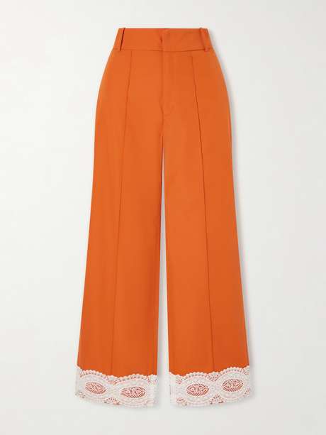 DESTREE Yoshimoto lace-trimmed cotton poplin pants