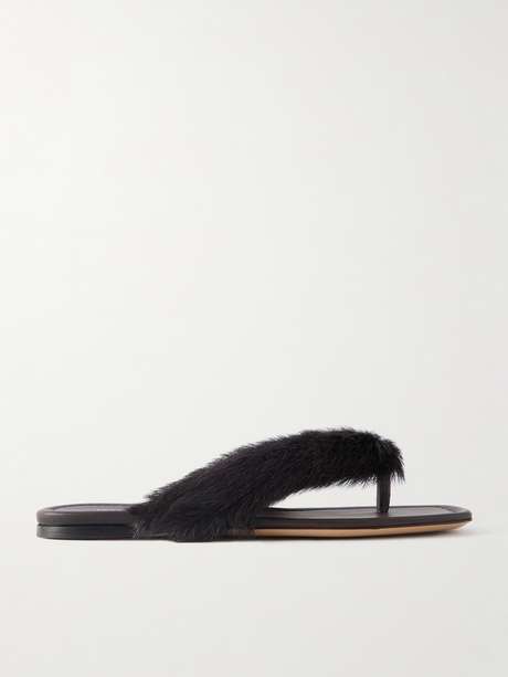 Ferragamo's 'Loly' flip flops have fluffy shearling straps that'll add textural interest to anything you wear them with. They have chic square toes and lightly padded leather footbeds.