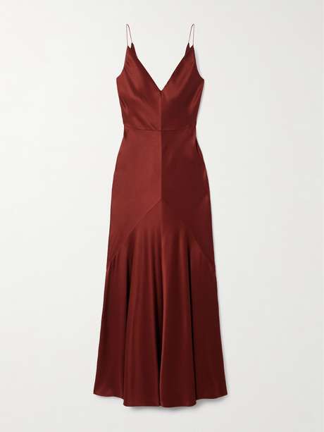 Gabriela Hearst's 'Brigita' dress is made from panels of glossy silk-satin that skim elegantly over your curves. It has a V-neckline mirrored at the even-lower back, and flowy skirt. Complement the rich 'Burnt Sienna' shade with emerald earrings.