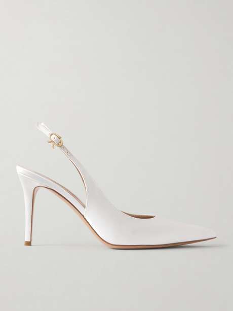 Gianvito Rossi’s “Ribbon” pumps exude sophistication. Made in Italy from lustrous satin, they feature a buckled slingback strap and 85mm heels for an elegant lift.