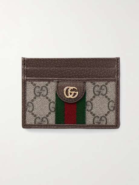 Gucci's cardholder is modeled after the label's signature 'Ophidia' styles. Made from printed coated-canvas and textured-leather, it's detailed with the house's heritage green and red webbing and has enough slots to hold your most-used cards. It will tuck easily into compact camera bags and clutches.