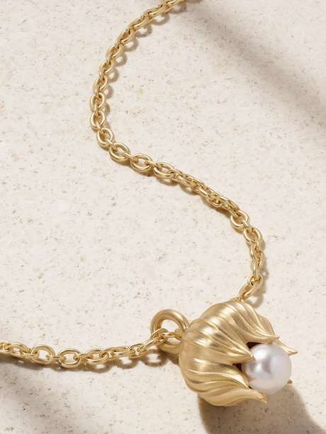 Irene Neuwirth's necklace is from the label's 'Botanical' collection, which highlights the beauty of different flowers. Handmade from 18-karat gold, it has a classic 'Oval Link Chain' strung with a pearl-tipped 'Lily of the Valley Blossom'.