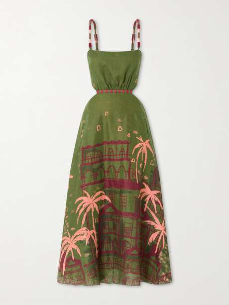 The artful print of Johanna Ortiz 'Sailors Prayer' maxi dress pays tribute to the label's native Colombia. It's cut from airy linen with beaded trims at the straps and framing cutouts at the waist. Wear yours with lace-up sandals.