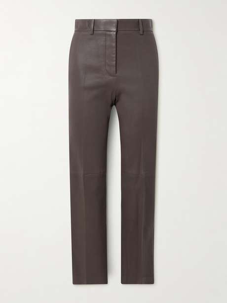 Joseph has always nailed pants, so who better to create a sleek, tailored leather style that you could even wear to work? This supple, slightly stretchy 'Coleman' pair has slim, paneled legs. Match the classic mushroom shade to a tonal blazer.