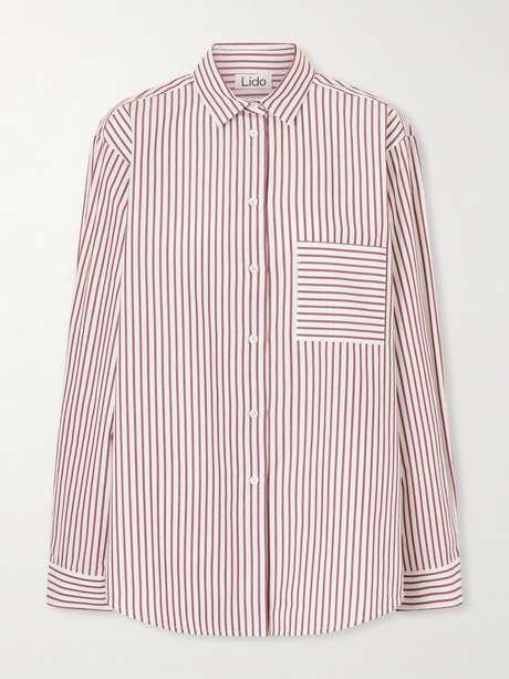 Lido's shirt is cut from crisp cotton-poplin in a striped pattern, designed with an oversized fit, pointed collar, and chest pocket. Its soft structure and flowing silhouette offer a contemporary take on a classic wardrobe staple, versatile enough to wear layered or on its own.