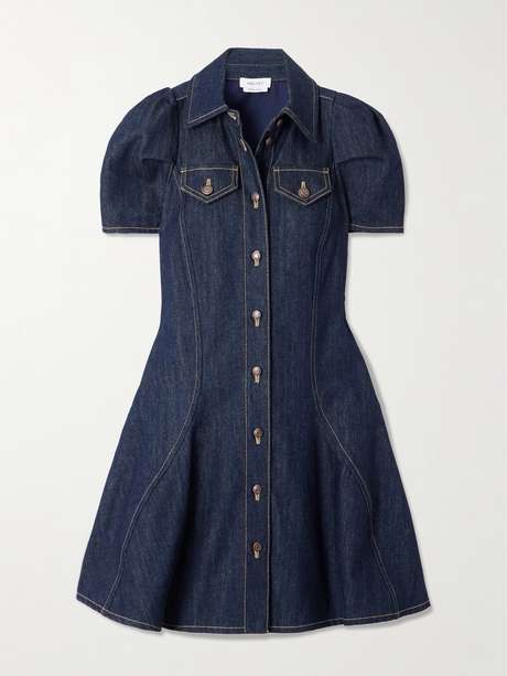 McQueen's denim dress feels particularly feminine with its puffed sleeves and contouring seams. Washed in inky navy, it nips in at the waist before flaring out to a floaty hem. Leave a few top buttons undone for a more relaxed take.