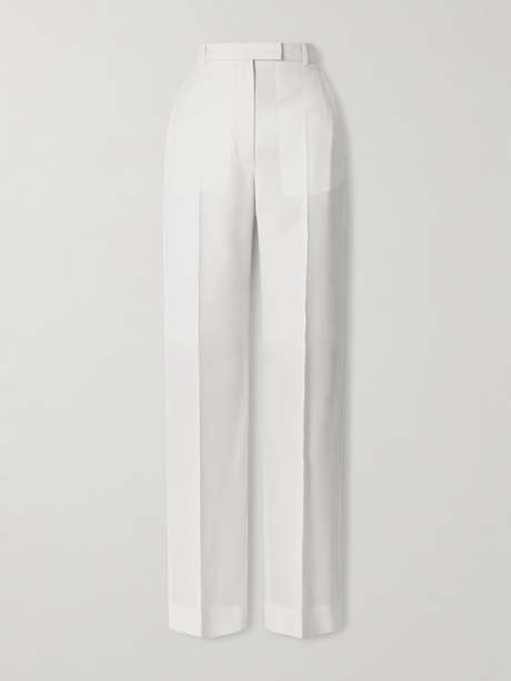 McQueen's pants are, of course, tailored with meticulous precision. They're made from grain de poudre wool and cut to sit high on the waist. The pressed creases sharply define the straight legs.