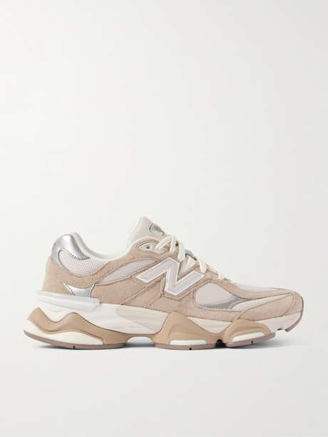 New Balance's '9060' sneakers take cues from the brand's innovative 99X series. Characterized by a futuristic profile and unconventional details that speak to revivalist Y2K trends, this pair is made from contrasts of plush suede and breathable mesh with metallic trims. Stabilizing sway bars and ABZORB cushioning ensure comfort underfoot.