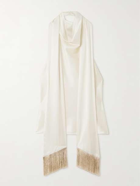 NINA RICCI Fringed scarf-detailed draped satin halterneck top