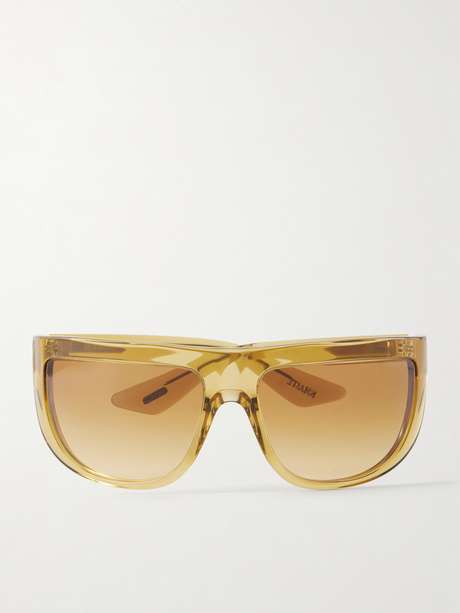 Oliver Peoples' '1974C' sunglasses are created in collaboration with KHAITE. Designed with an oversized wraparound shape, the frames make a bold statement, while exclusive detailing and distinctive colorways reflect the partnership’s refined approach to modern eyewear.