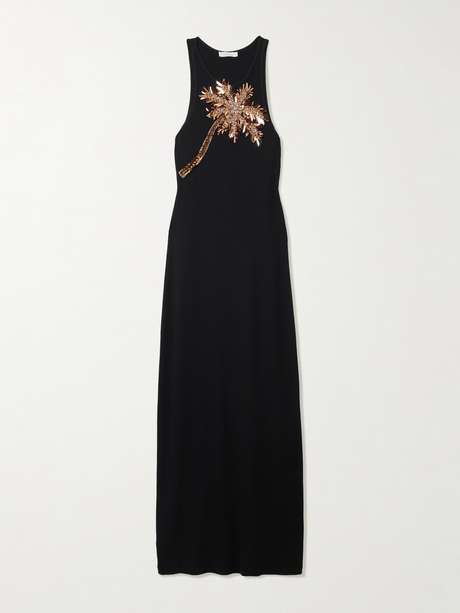 Rabanne is never afraid to make a bold statement. This maxi dress is cut from soft stretch-cotton jersey and is embellished with a glistening palm tree.