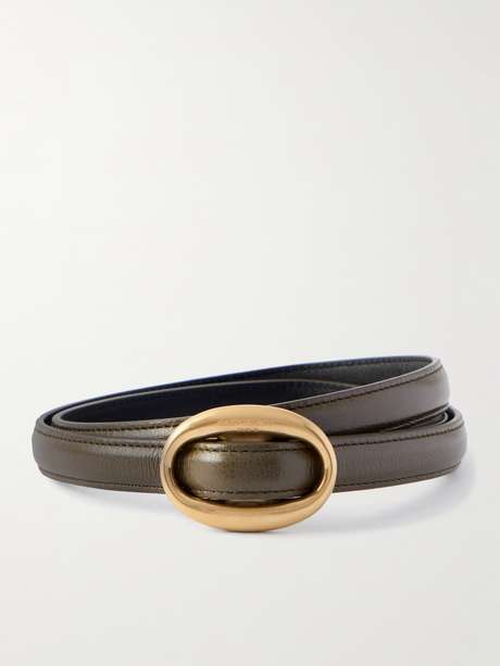 SAINT LAURENT's belt has buy now, wear forever energy. Cut skinny, it's been made in Italy from supple glossed-leather and has an oval gold-tone buckle reminiscent of sculptural jewelry.