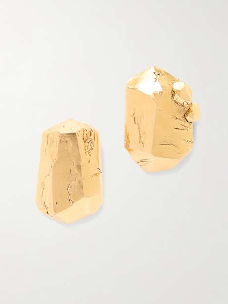SAINT LAURENT's earrings are designed to look like the rock formations you'd find in the natural world. They're made from polished gold-tone brass and hollowed out to keep the generous shape comfortable.