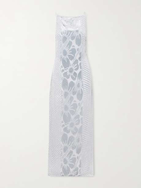 SIR.'s 'Ventura' gown channels the understated romance of '90s styles. Made from floral devoré-velvet, it has a straight neckline framed by slim straps and a square open back. Style yours with barely-there sandals and a sculptural cuff.