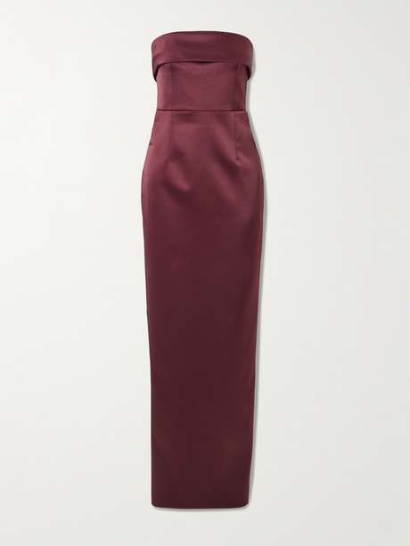 The New Arrivals Ilkyaz Ozel's statuesque 'Rhea' gown is beautiful in its simplicity. In a deep 'Blood Moon' shade, it's made from duchesse-satin in a column silhouette and has an elegant, fold-over strapless neckline. Wear yours with emerald jewels.