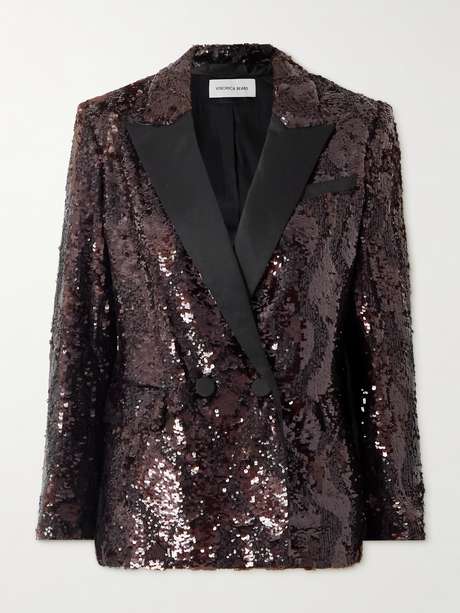 Veronica Beard's 'Sevyn' jacket is perfect for party season. Tailored from satin, it's saturated with shimmering sequins and has a smart double-breasted profile. Wear yours with wide-leg pants and pointed pumps.