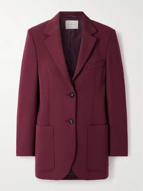 Veronica de Piante's 'Sebastian' blazer is a 'Garnet' shade that feels so luxurious. Tailored from grain de poudre wool, it has a single-breasted front with notched lapels and deep patch pockets. Wear yours as a suit with the matching 'Rhea' pants in our edit.