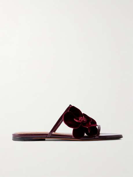 ZIMMERMANN Orchid appliquéd velvet-trimmed glossed-leather slides