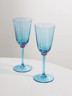 “The number-one thing for me is always the printed porcelains and the colored Murano glassware – those are instant lifts,” continues Martin. “From there, you can either decide to go more minimal with an all-white table or go maximalist by layering on colored and patterned linens or lots of colorful flowers. I love using our long-stemmed Murano wine glasses with our Murano bud vases to really make a setting pop.”