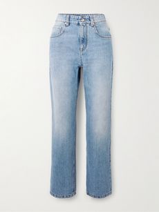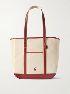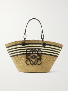+ Paula's Ibiza Anagram Basket medium leather-trimmed striped raffia tote