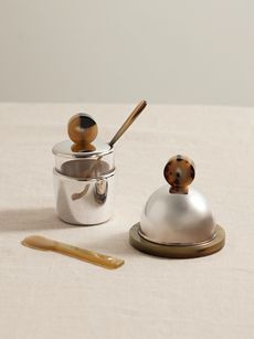 BRUNELLO CUCINELLISilver-plated and horn serving set