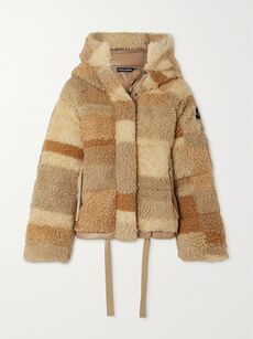 HOLDENHooded quilted color-block fleece down jacket