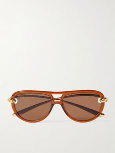 BOTTEGA VENETA EYEWEARNew Knot aviator-style acetate and gold-tone sunglasses