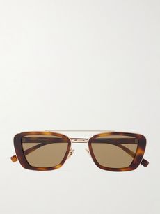 SAINT LAURENT EYEWEARRectangle-frame tortoiseshell acetate and gold-tone sunglasses