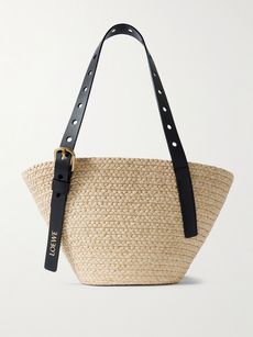 LOEWE+ Paula's Ibiza Punch Hole Small leather-trimmed raffia tote