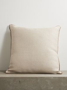 BRUNELLO CUCINELLIBead-embellished leather-trimmed woven cotton-blend cushion