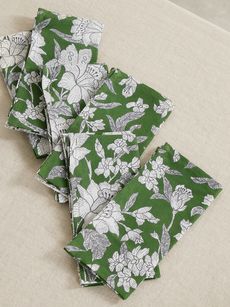 “I’m always one for clashing prints and colors, but our scalloped placemats in more subtle hues with matching linen napkins feel really fresh and can throw more focus on the space you are in. We used the emerald versions for a lunch at Passalacqua hotel last summer – the effect of the greens from the linens set against all the greens around Lake Como was subtle but totally romantic.