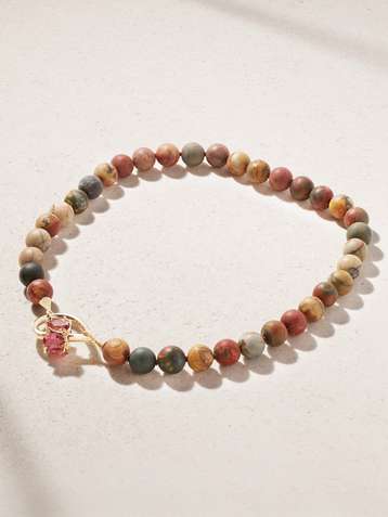Stoned Chubby Droplock 14-karat gold, jasper and tourmaline necklace