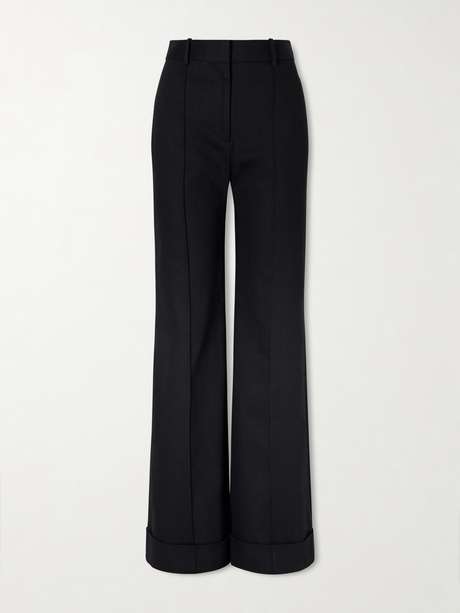 Adam Lippes' 'Deeda' jeans are made from denim that has a thick, slightly structured handle. They're cut to sit high on the waist and have wide legs with elongating raised seams that lead to rolled cuffs. Wear them as a set with a tee or jacket.