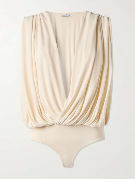 ALAÏA Hooded draped jersey bodysuit