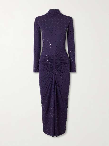 Alaïa's dress will stand out at any sparkling event. True to the maison's eye for sculptural design, it has contoured seams and ruching highlighting the waist, plus a sleek mockneck. The jersey is sprinkled with chunky crystals for wonderful shimmer.