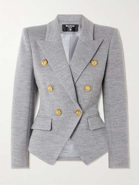 Whether you wear yours to the office or on a dinner date, Balmain's blazer has you covered. Tailored from mélange wool-blend jersey, it has a double-breasted front and is finished with iconic engraved buttons. Wear yours with the matching leggings from our edit.