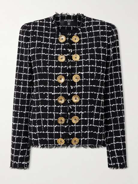BALMAIN Frayed checked bouclé-tweed jacket