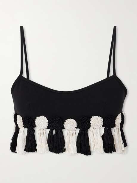 BODE's 'Folly' top draws inspiration from '60s burlesque bras. It's made from wool-crepe and decorated with swishy tassels along the hem. Wear yours with high-rise pants and ballet flats.