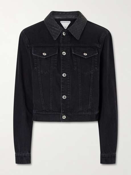 BOTTEGA VENETA Intrecciato leather-trimmed denim jacket