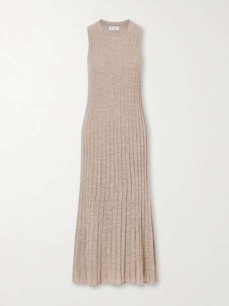 BRUNELLO CUCINELLI Metallic ribbed-knit midi dress