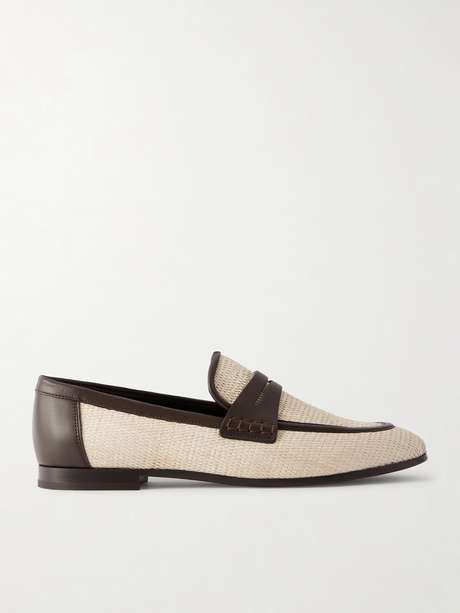 BRUNELLO CUCINELLI Leather-trimmed raffia penny loafers